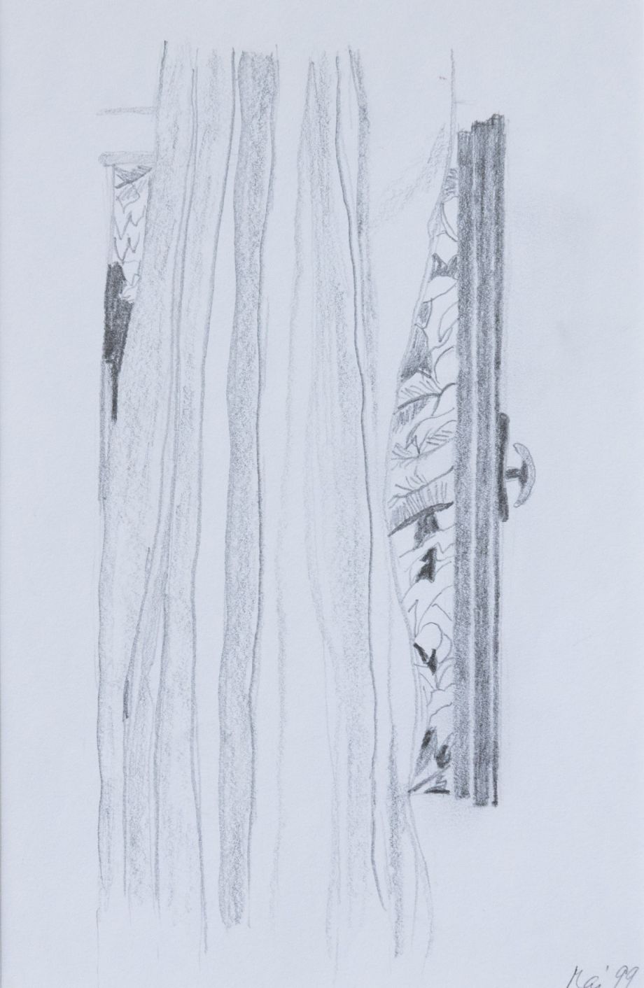 „Fenster mit Vorhang“ – Bleistift auf Papier,23.6x18cm, 1999