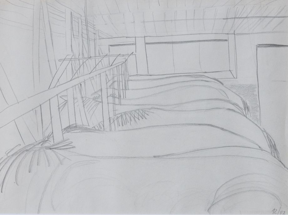 „im Stall“ – Bleistift auf Papier, 21×28.5cm, 2002