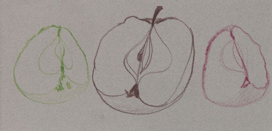 „Apfelteile“ – Buntstift auf Karton, 10.5x21cm, 1999