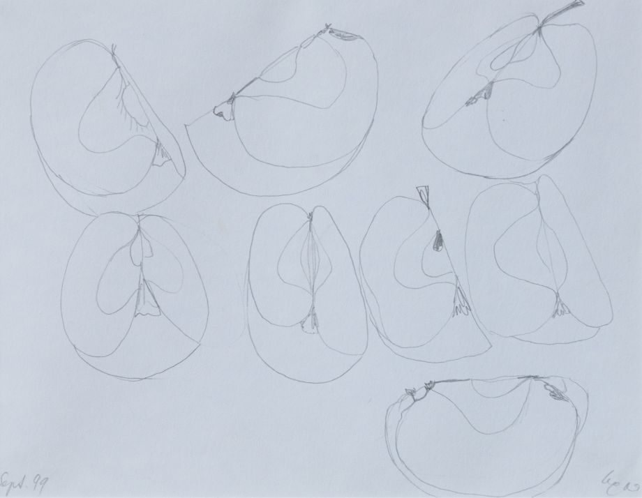 „Apfelstücke“ – Bleistift auf Karton, 18×23.5cm, 1999